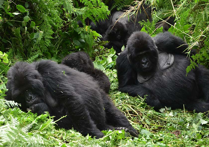 Volcanoes National Park protects the steep slopes of this magnificent mountain range and is the home of the rare mountain gorilla and the rich mosaic of montane ecosystems, which embrace evergreen and bamboo forest, open grassland, swamp and heath, but the high point will be spending an hour with the remarkably peaceful gorillas despite their size and appearance as they go about their daily life, feeding, playing, resting and raising their young. Overnight at Da vinci Gorilla Hotel
